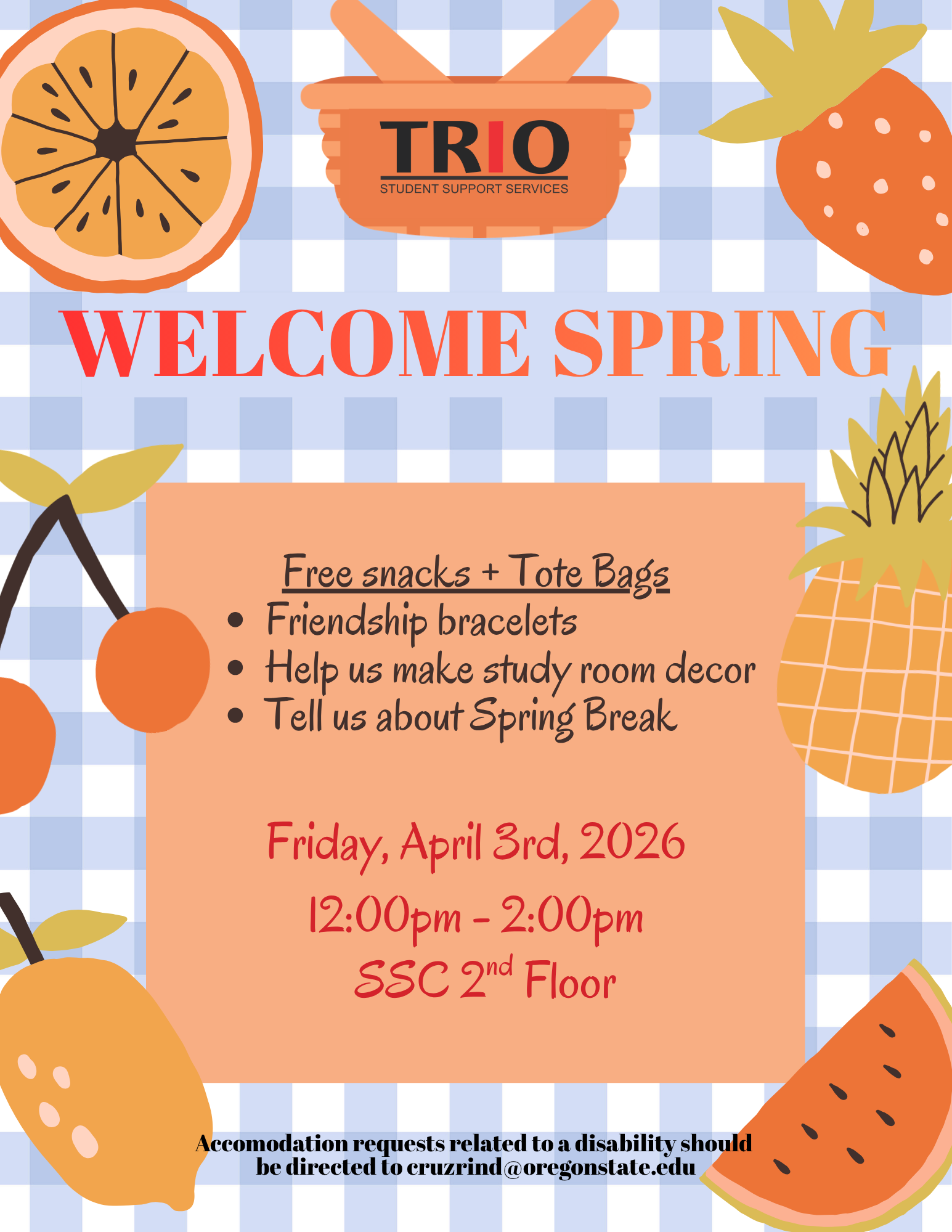 The workshops, events, and activities are coordinated by the TRIO SSS Peer Mentors as well as the Informal Learning Space student staff and are intended to add value to your overall success at Oregon State University. Participation is expected and greatly encouraged. Check the weekly TRIO newsletters for event details and RSVP links. (Click on the events listed below to see the event's full flyer)